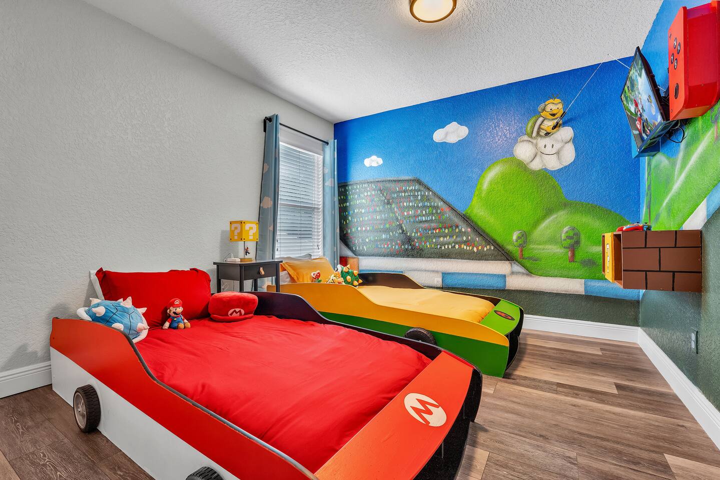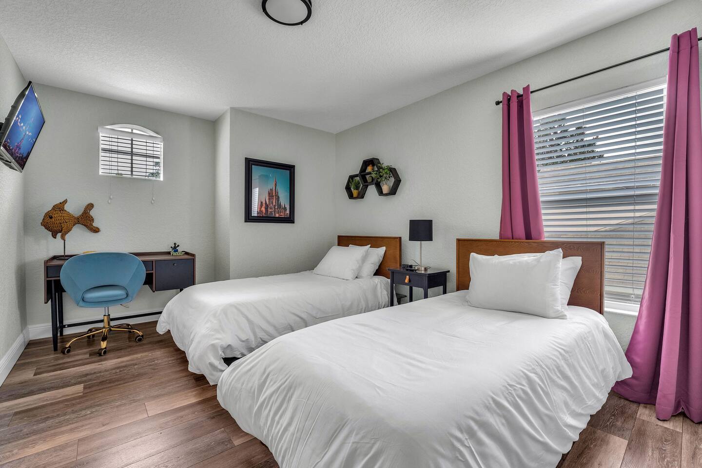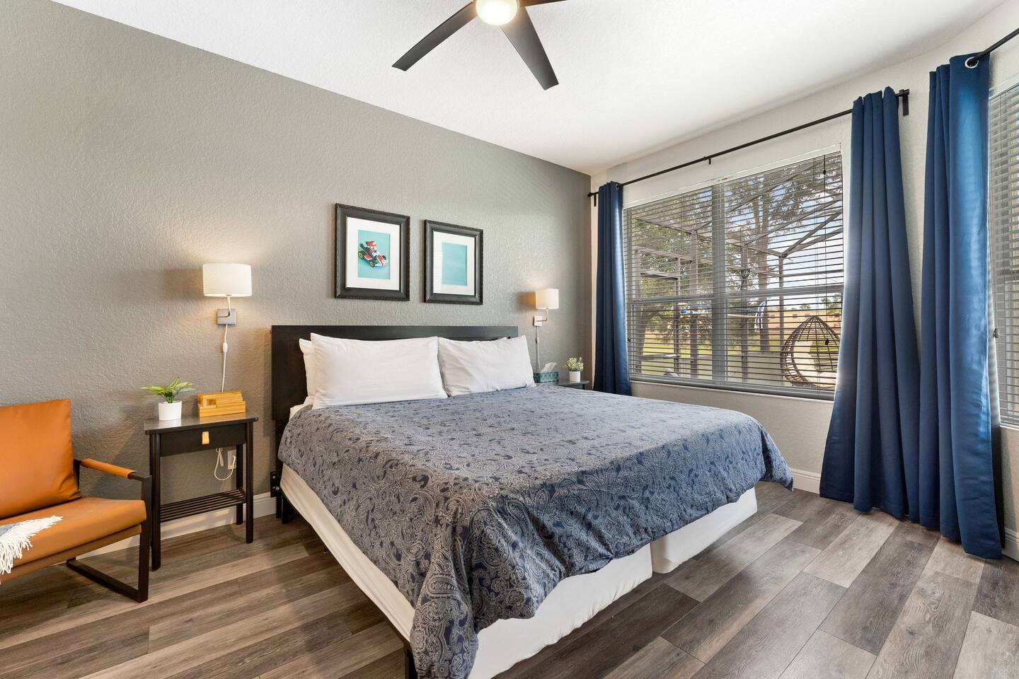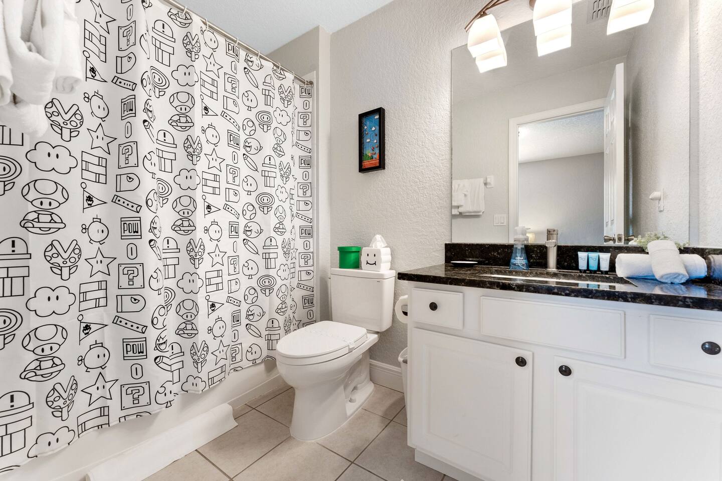 Welcome to my home in Windsor Hills, a 5B/5BA luxurious mid century modern home minutes to the parks. • 🎬 Drive-in themed movie theater • 🏎️ Mario Kart themed bedroom • 🏝️ Private pool and spa • 🕹️ Game room with arcades & Xbox • 🖼️ No neighbors behind the home • 🎟️ Short walk to clubhouse with pool & slides • 📶 High speed Wi-Fi • ⭐️ Top resort community *Windsor Hills*