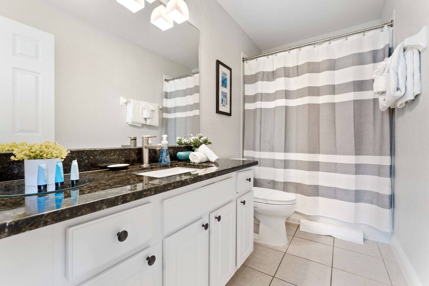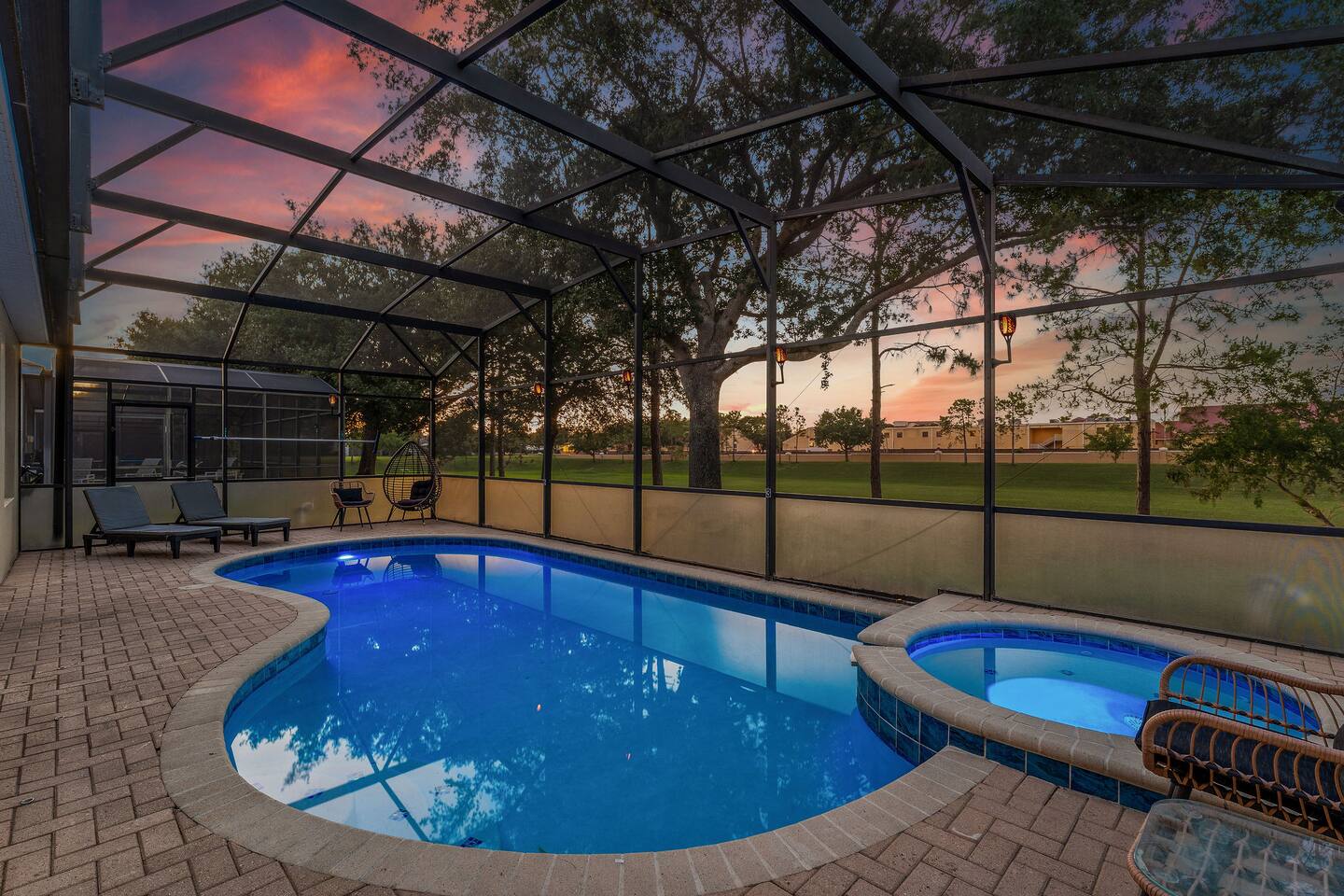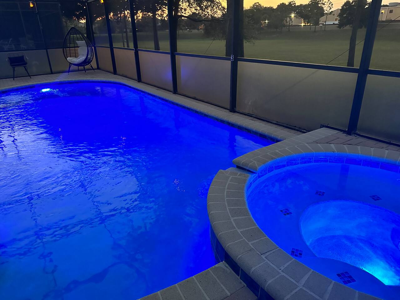 My newly renovated home is in the heart of the theme parks, minutes to Disney, Universal, and the rest Orlando has to offer. 2,342 sq ft, it’s open and airy layout can accommodate up to 10 people. Community amenities include a clubhouse with a pool & slides, gym, tennis courts, basketball court, putting green, and beach volleyball all within a short walk. The home is furnished with brand new MLILY mattresses, and an Article sofa. 2 remodeled modern showers are highlights as well. Inside the kitchen, you'll find new stainless steel appliances, silverware, pots, pans and plates for your stay. All bedrooms, the living room, and game room have new Roku TVs. The drive-in themed movie theater has a 10 ft projector screen with a Retro 1957 Chevy Car Sofa shipped from a Gallery. In terms of amenities - pool, spa, arcade games, Xbox Series X, Nintendo Switch, fast Wi-Fi, blow dryer, towels, soap, paper towels, shampoo, and conditioner are provided. 2 King Beds (downstairs), 1 Queen Bed (downstairs), 4 twin beds (upstairs). Each of the 5 bedrooms has its own bathroom. The pool and hot tub can be heated for an additional daily charge. A visit from Disney/Universal characters, and a private chef can be arranged for an additional cost as well. At no additional charge, 2 Summer 3Dmini Convenience Strollers, one high chair, and one Graco Pack 'N Play playard are available to use. Please notify me before arrival if you'd like to use any of these, and we can arrange to take out of storage. Resort: visit the Welcome Center at the main clubhouse to obtain your FREE wrist bands for full access. Dogs may be allowed depending on the situation - if they won’t increase the cleaning required, that should be fine. Please message me to confirm before booking. You'll have everything you need for a very comfortable stay! You can only book if you have a 5 star rating as a guest. No guns, knives or other weapons allowed on the property.