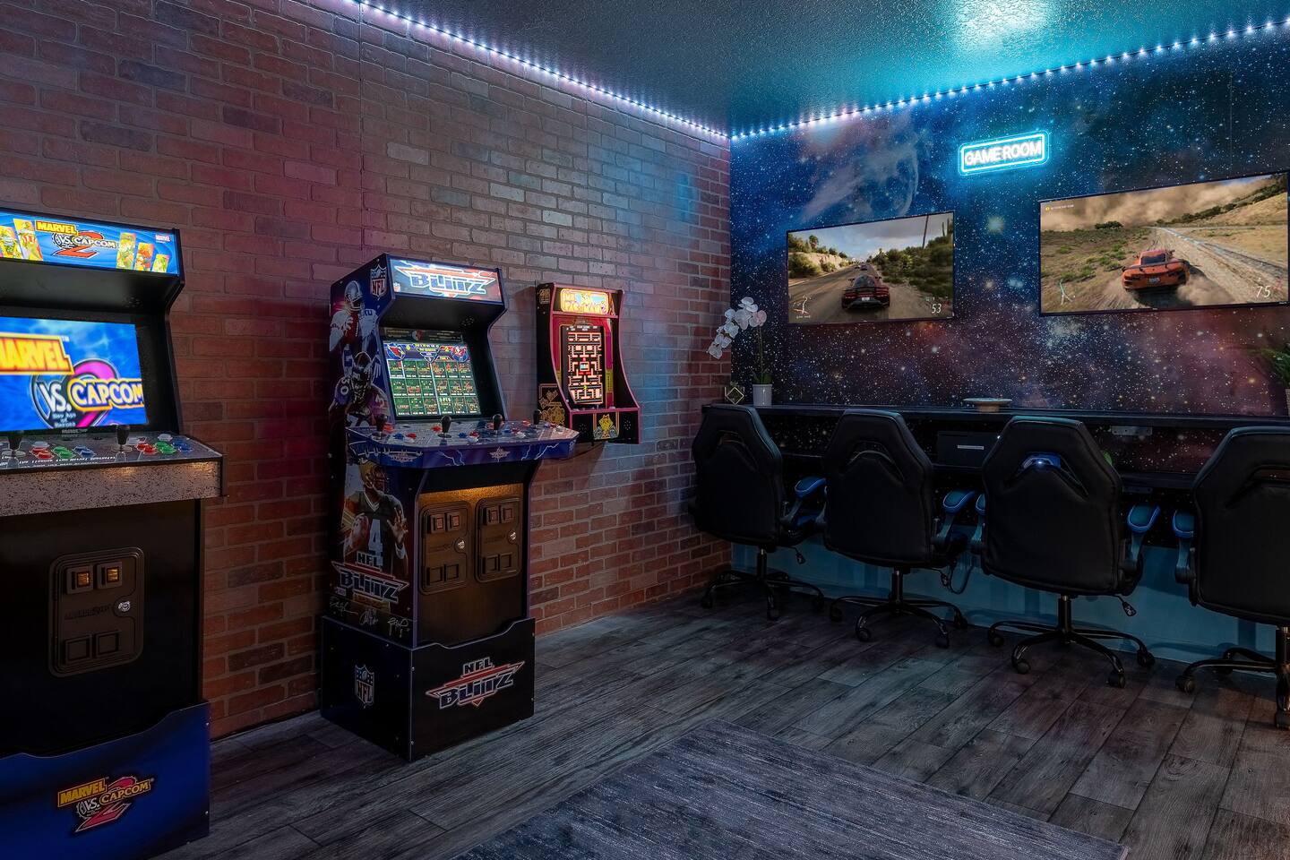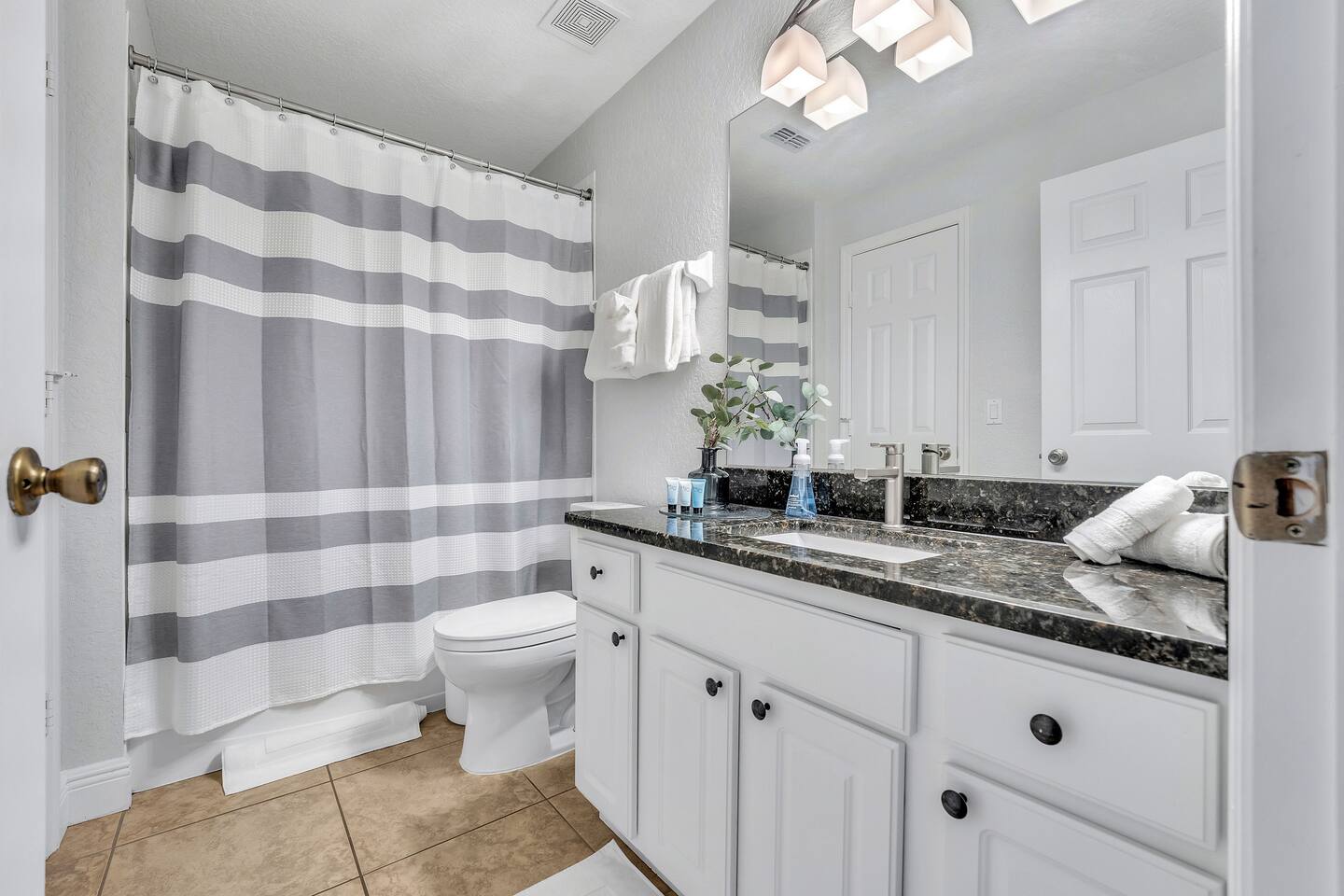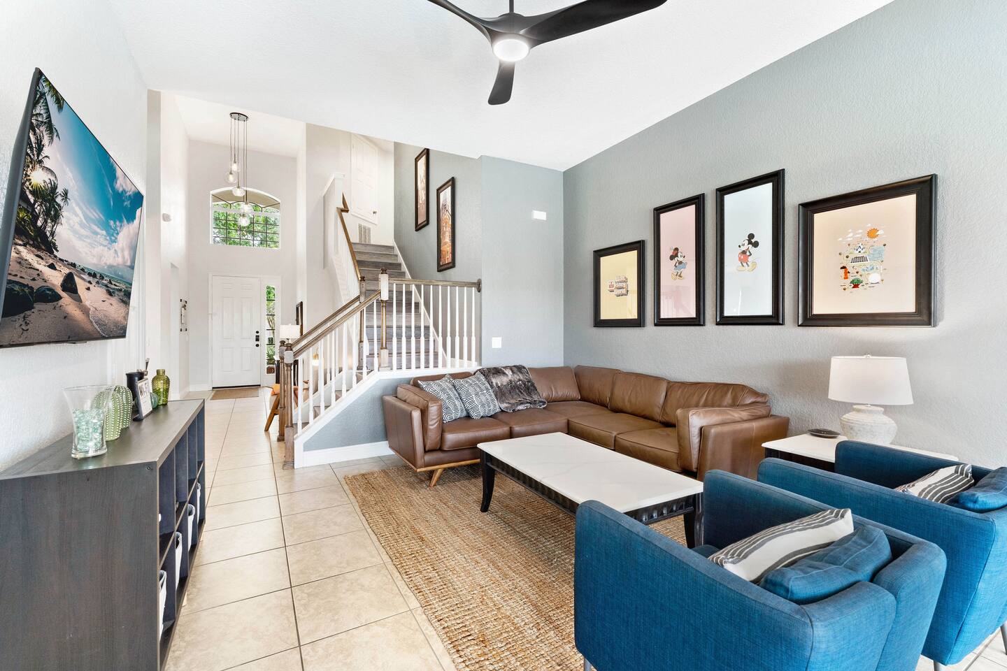 My newly renovated home is in the heart of the theme parks, minutes to Disney, Universal, and the rest Orlando has to offer. 2,342 sq ft, it’s open and airy layout can accommodate up to 10 people. Community amenities include a clubhouse with a pool & slides, gym, tennis courts, basketball court, putting green, and beach volleyball all within a short walk. The home is furnished with brand new MLILY mattresses, and an Article sofa. 2 remodeled modern showers are highlights as well. Inside the kitchen, you'll find new stainless steel appliances, silverware, pots, pans and plates for your stay. All bedrooms, the living room, and game room have new Roku TVs. The drive-in themed movie theater has a 10 ft projector screen with a Retro 1957 Chevy Car Sofa shipped from a Gallery. In terms of amenities - pool, spa, arcade games, Xbox Series X, Nintendo Switch, fast Wi-Fi, blow dryer, towels, soap, paper towels, shampoo, and conditioner are provided. 2 King Beds (downstairs), 1 Queen Bed (downstairs), 4 twin beds (upstairs). Each of the 5 bedrooms has its own bathroom. The pool and hot tub can be heated for an additional daily charge. A visit from Disney/Universal characters, and a private chef can be arranged for an additional cost as well. At no additional charge, 2 Summer 3Dmini Convenience Strollers, one high chair, and one Graco Pack 'N Play playard are available to use. Please notify me before arrival if you'd like to use any of these, and we can arrange to take out of storage. Resort: visit the Welcome Center at the main clubhouse to obtain your FREE wrist bands for full access. Dogs may be allowed depending on the situation - if they won’t increase the cleaning required, that should be fine. Please message me to confirm before booking. You'll have everything you need for a very comfortable stay! You can only book if you have a 5 star rating as a guest. No guns, knives or other weapons allowed on the property.